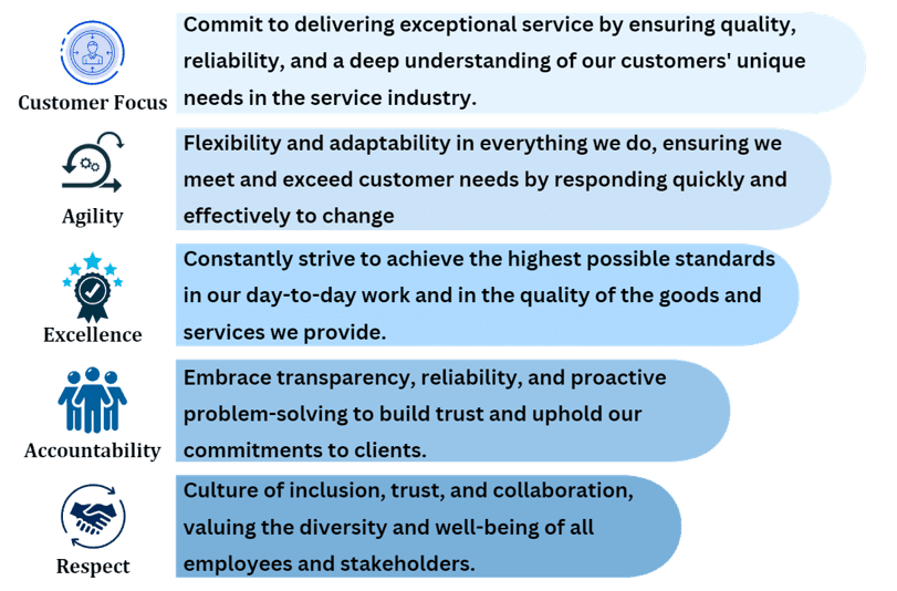 To emerge as the premier provider of innovative business solutions, empowering businesses across India with unparalleled support in design, staffing, and training. We aim to earn recognition for our steadfast dedication to quality, excellence, and rapid adaptability to our clients’ evolving needs.